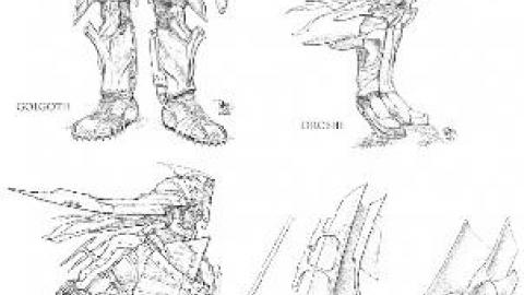 Quelques croquis de costumes réalisés par Yoshitaka Amano