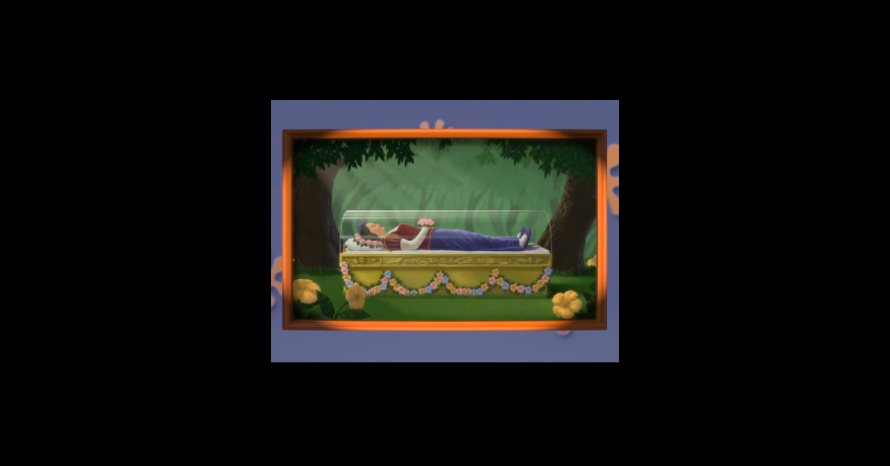 Bon, la reference a Blanche Neige est assez evidente pour ne pas en rajouter... Il suffit de dire que le miroir magique devient sous la plume des scenaristes un presentateur de Tournez manege... Hilarant